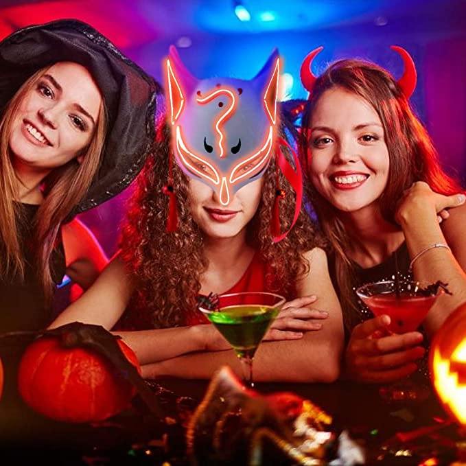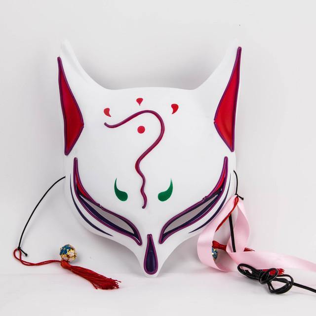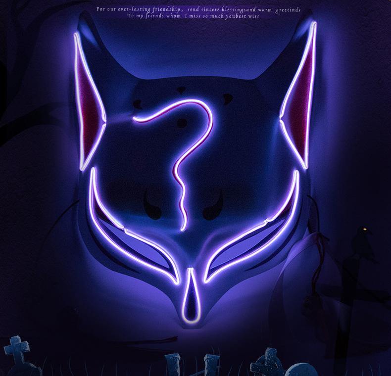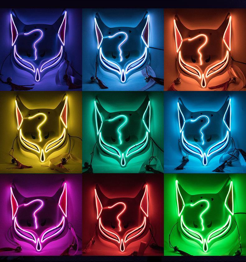 LED lights fox mask Japanese anime glowing kitten mask to participate in masquerade ball Hip Hop cosplay Halloween costume party