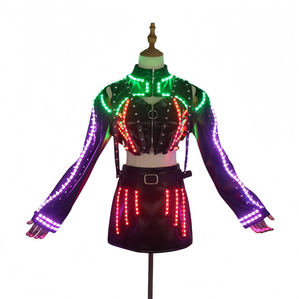 LED Glow Dance Dress Set for Women, Techwear Nightclub DJ Performance Outfit for Party & Stage Show