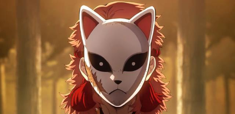 Макомо — загадочная девушка с темно-зелеными волосами средней длины и маской лисы с цветами на лбу.